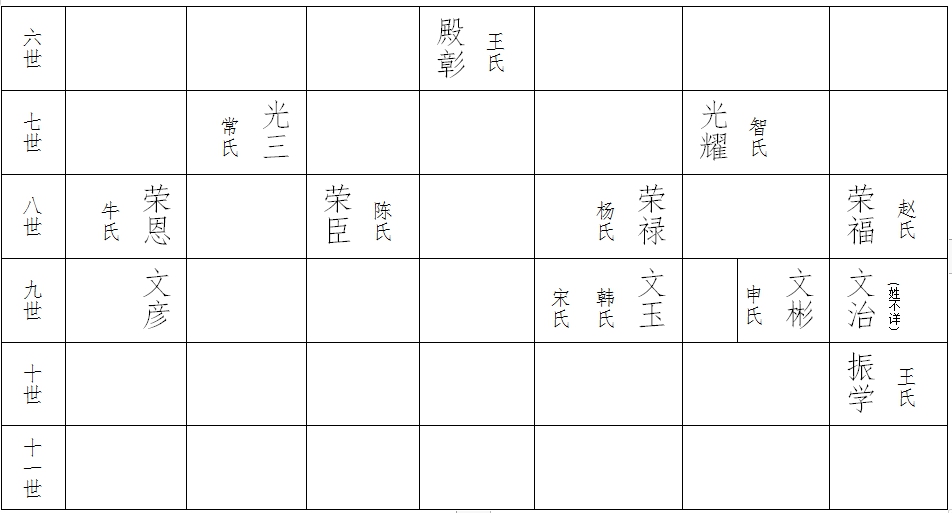 長門六世殿彰祖后裔四代部分葬墳示意圖 村南墓地