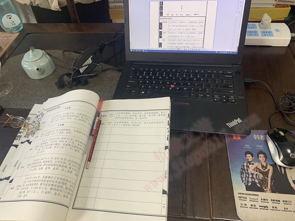 (唐老師現(xiàn)場(chǎng)校對(duì)唐氏家譜稿件中)