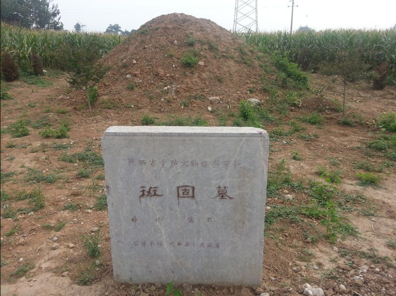 (二)、班固墓:班固墓位于扶風(fēng)縣城東10公里處的太白鄉(xiāng)浪店村西寶公路南側(cè),屬省級重點文物保護單位。班固(32—92年),字孟堅,東漢扶風(fēng)安陵人,我國古代著名的史學(xué)家、文學(xué)家。因編著《漢書》為史家仰慕,眾多文人墨客前往墓地瞻仰憑吊。墓冢呈圓形,饅頭狀,直徑6米,高3米。墓地原占地1.2畝,外用磚砌筑圍墻,墓前有清代石碑三通,石羊一對,石案一座,現(xiàn)僅有墓地0.5畝。一座平常而又平常的墳?zāi)棺湓谝幻婀?,三面環(huán)繞玉米地的中間,要不是陜西省政府立的文物保護單位的石碑,誰又能想到這里是我國漢代的歷史學(xué)家、文學(xué)家享有盛名的一代風(fēng)流人物安息的地方,其荒涼寒酸的程度不僅使廣布于五湖四海的班姓子孫唏噓不已,也使中國廣大有識之士深感不平。所以在2013年8月,中國秦漢史研究會等5家單位,舉行了班固學(xué)術(shù)研討會,邀請了全國20多位歷史專家探討班固墓現(xiàn)狀和《漢書》的深層研究。同時,修復(fù)班固墓的啟動揭牌儀式也在班固墓前舉行。據(jù)悉,省文物局有望近期派出考古人員對其進行勘探,并根據(jù)勘探結(jié)果設(shè)置保護規(guī)劃,一旦規(guī)劃通過就可以啟動保護工程。記者從中國秦漢史研究會獲悉,有望到2015年將班固墓恢復(fù)至明清時期的規(guī)模。最終建立以班固墓為主包括其周邊馬援墓、蘇武墓、班昭墓等在內(nèi)的關(guān)中漢文化展示區(qū)。