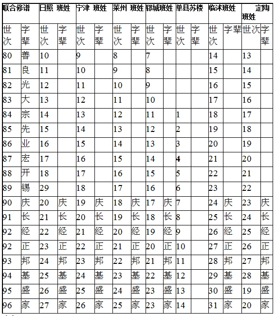 日照、寧津、臨沭班氏世次字輩對應(yīng)關(guān)系表