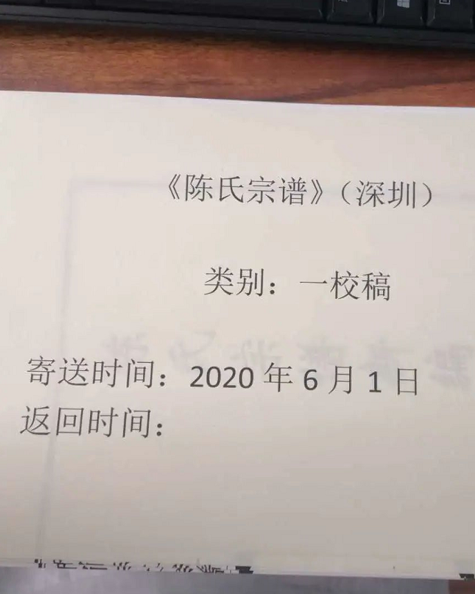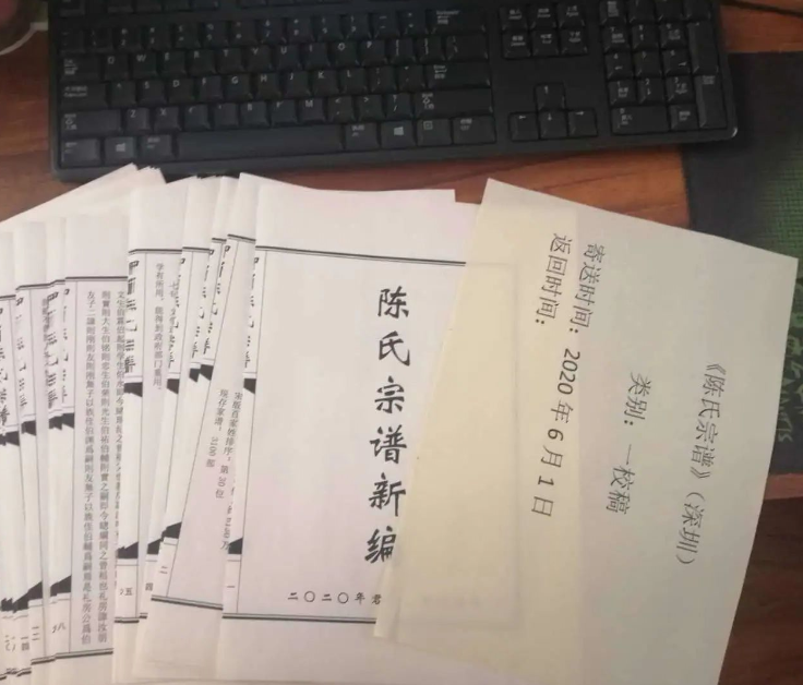 深圳陳氏宗譜編修進(jìn)展,一校稿已寄送。