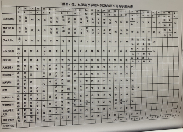 楊氏佐、佑祖房系字輩對(duì)照及啟用五言百字輩總表