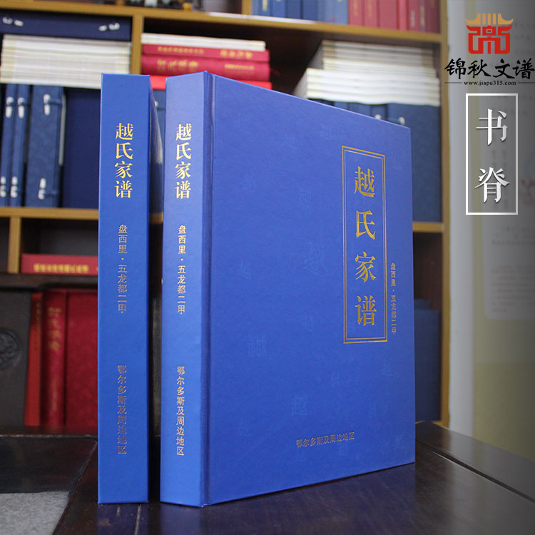 (精裝燙金藍(lán)色越氏家譜書(shū)脊)