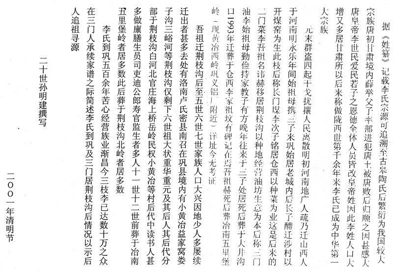 二十世孫明建撰寫鞏義李氏序言(文言文篇)
