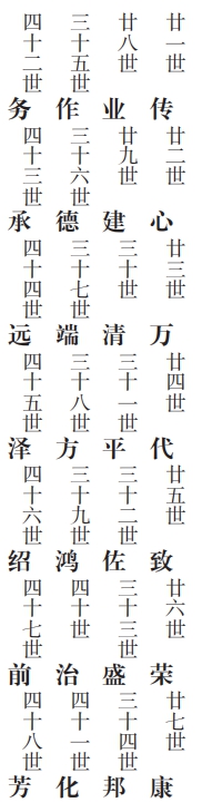我宗族于公元一八八八年,清光緒十四年,歲次戊子年,第八屆合修總譜,立定三十八個(gè)字輩。