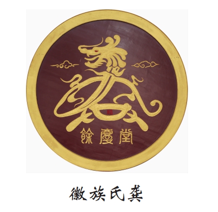 圖案下是纂書共字,共字上形象似「鼎」中間嵌于「?!梗旅媸枪沧?,共字下面兩點,篆書兩點如同雙手,似龔氏族人雙手托鼎敬奉與龍,龍為眾炎皇之子孫隆福、平安。而龔氏子孫更是龍的傳人,享受龍的恩典、龔氏族人繼承先祖遺志,艱苦創(chuàng)業(yè),勤儉持家,以孝為先,德為本。不忘先祖典范與本色,繼承和發(fā)揚先祖優(yōu)良傳統(tǒng)。龔氏族人以龍為上。以九五為君鼎天立地,以國為本,以和諧為準則,世代如此,萬眾一心,家和萬世興。