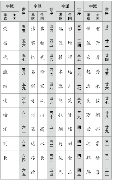 全國(guó)和孝感岳氏家譜字派對(duì)照表