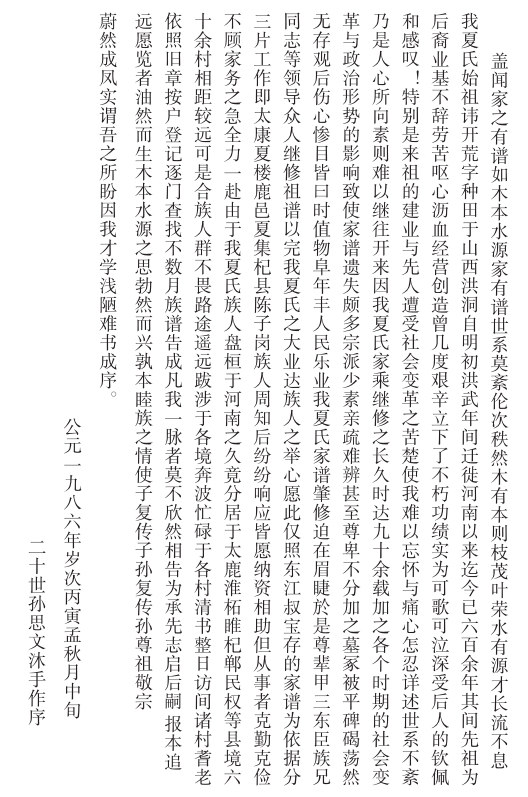 重修夏氏家乘序(公元一九八六年)