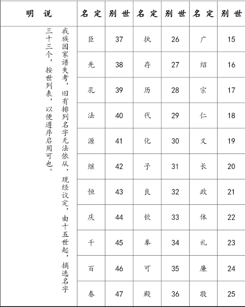 細(xì)柳堂北周氏按世選定名字表
