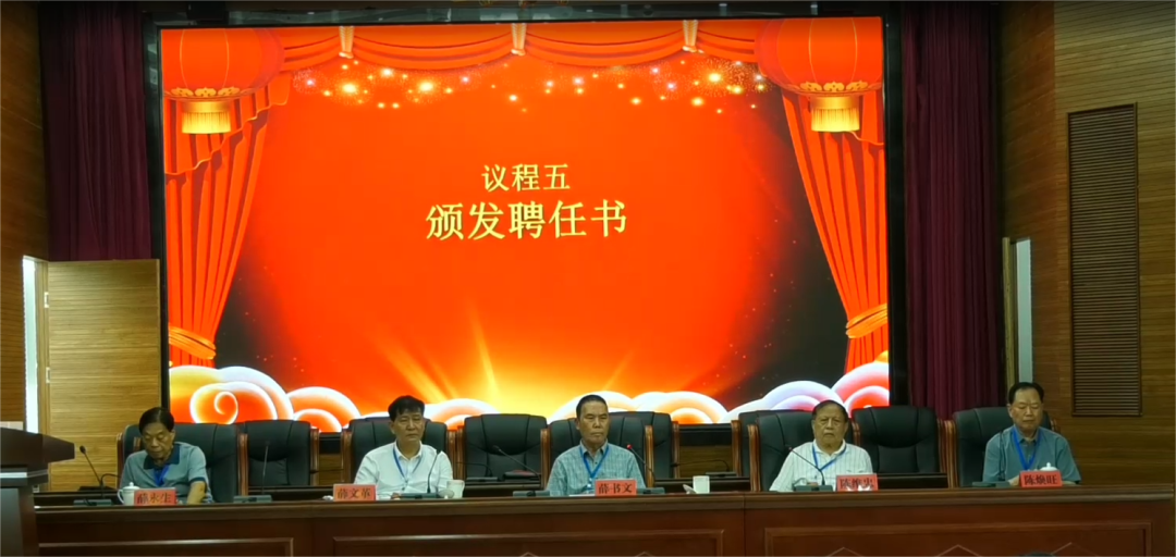 議程五:請福清市姓氏源流研究會會長陳煥旺先生為第一屆會長薛書文先生頒發(fā)聘任書;
